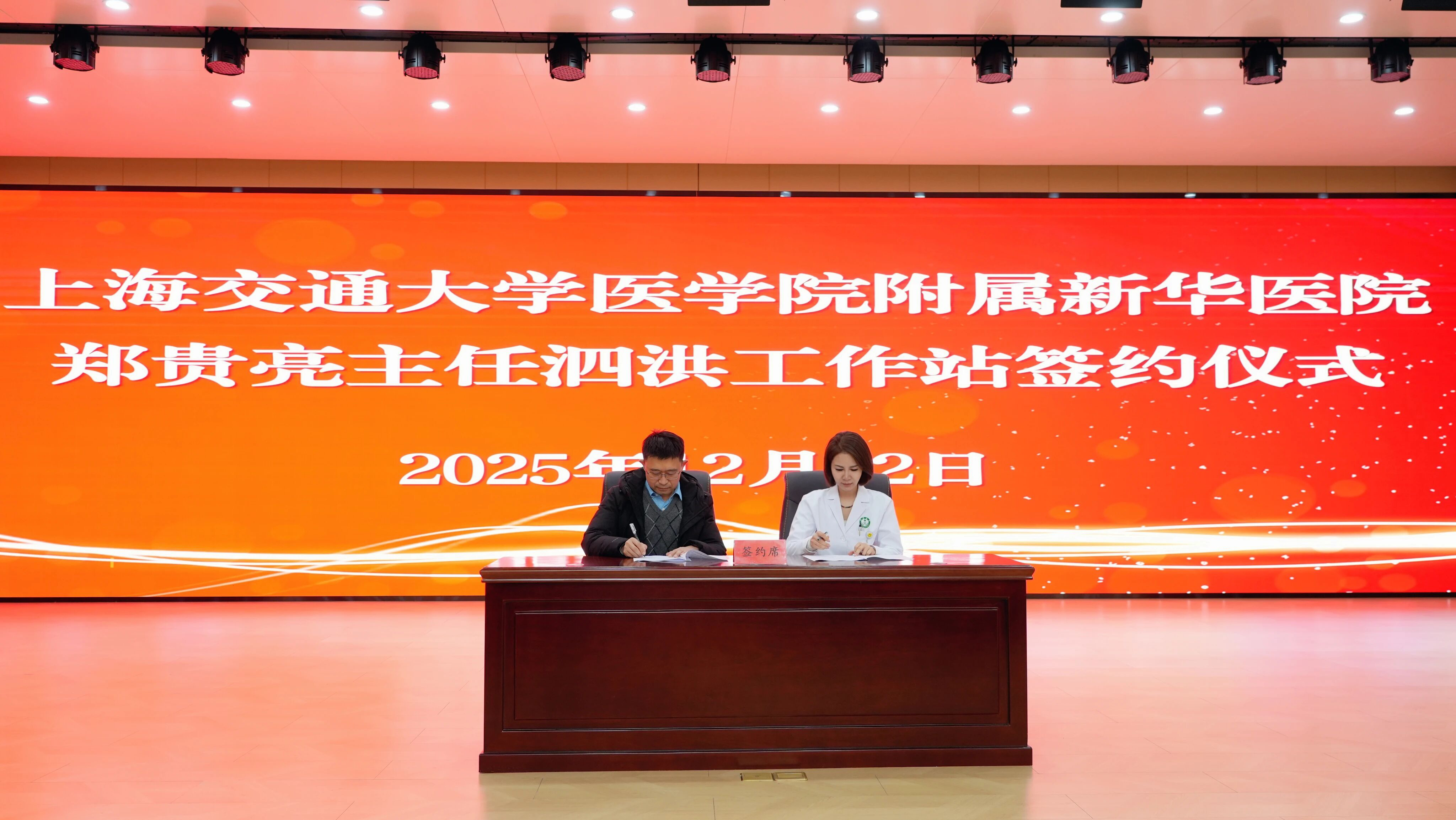 12月12日,上海交通大学医学院附属新华医院郑贵亮主任(国家临床重点专科行政副主任、主任医师、博士生导师)工作站签约仪式在泗洪医院综合楼六楼第一会议室隆重举行。泗洪医院董事长田辛辛出席仪式并代表医院签约。