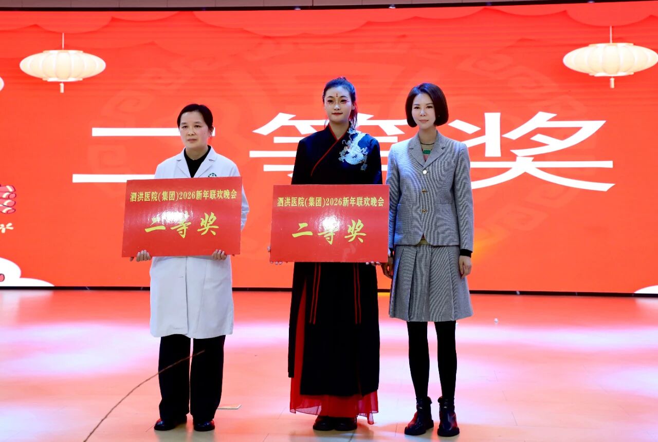 大众文艺展新态,包罗万象聚辉煌。2月1日,由泗洪医院(集团)各科室职工代表自导自演的“高歌洪医迎新年,高举红旗向未来”2026新年联欢晚会在泗洪医院综合楼六楼第一会议室举办。劲舞欢歌辞旧岁,同心共进话传承,台上华彩绽放,厅内满堂生辉,尽显“洪医”芳华。泗洪医院(集团)总裁高开亮、董事长田辛辛,集团董事会、院党政领导班子成员、各科室职工代表欢聚一堂,共度温馨难忘的美好时刻。