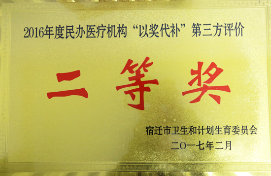 在宿迁市召开2016年卫计目标管理总结大会上,泗洪县人民医院荣获全市医疗机构“以奖代补”第三方评价二等奖。