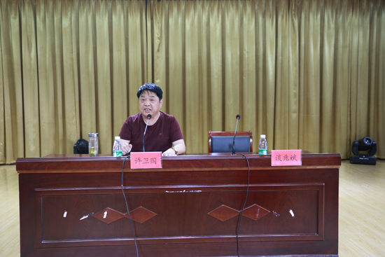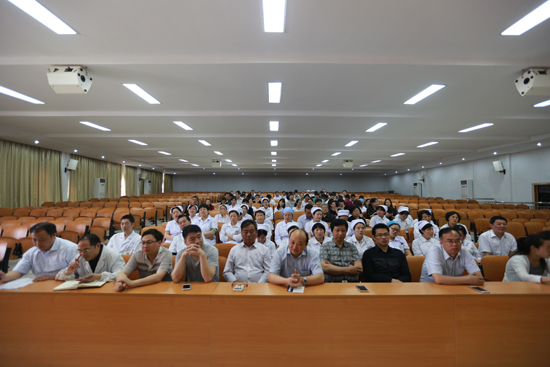 报告会由泗洪县人民医院党委书记谈兆斌主持,知名文化学者许卫国先生主讲,洪医集团领导班子、中层干部以及全体党员三百余人参加报告会。