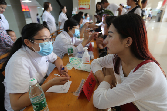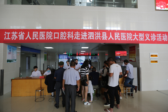 一大早,来自江苏省人民医院口腔科的医疗专家,就来到泗洪县人民医院门诊一楼大厅,投入到紧张、有序、高效的义诊工作中,为当地群众提供体检、诊断、专题讲座等免费医疗服务,同时给予泗洪县人民医院的医生指导与帮助。