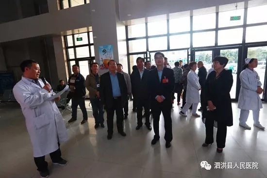 10月19日下午,副县长朱刚带领民政局、双拥办等部门领导一行莅临泗洪县人民医院检查指导双拥工作。县卫计委副主任谭苏洪、泗洪县人民医院院长高明献、党委书记谈兆斌等陪同检查。