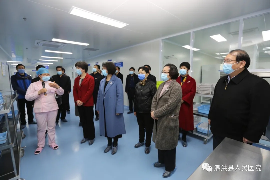 3月12日下午,市卫健委党委书记张岩一行莅临我院观摩指导工作。县卫健局党委书记、局长胡竹芳,洪医集团董事长高开亮,副董事长、泗洪县人民医院院长高明献陪同观摩。