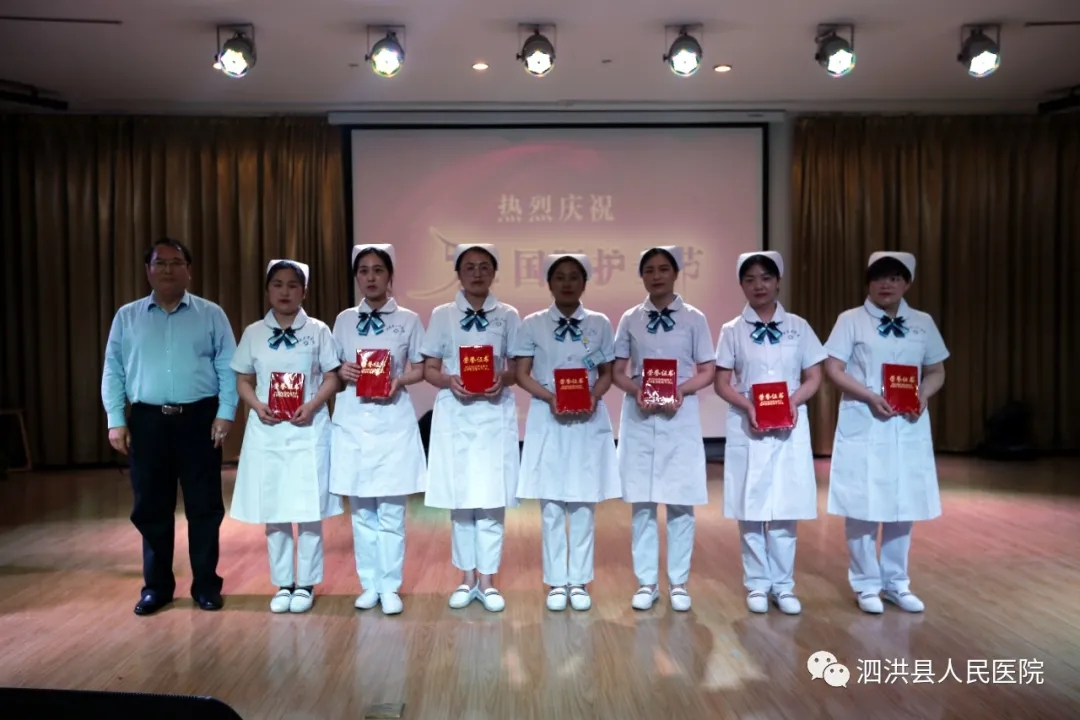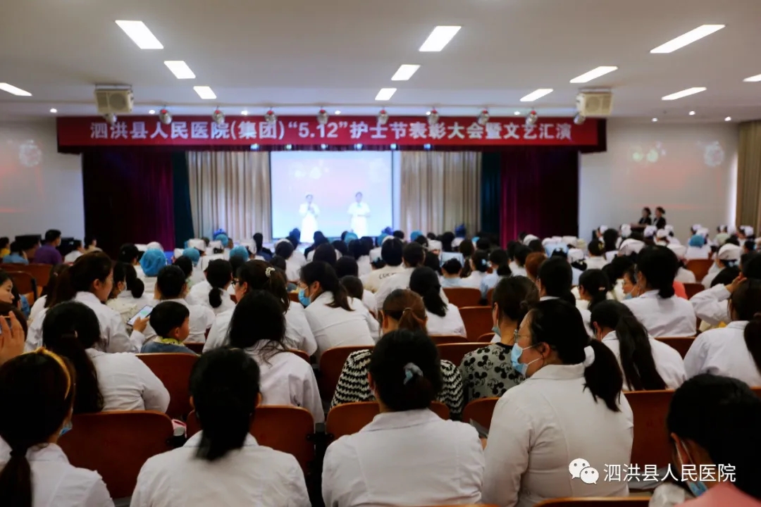 为了进一步弘扬南丁格尔救死扶伤、无私奉献的人道主义精神,表彰先进,激励典型,5月10日晚6点刚过,泗洪县人民医院(集团)在综合楼第一会议室举行2021年“5·12国际护士节”表彰大会暨文艺汇演。会上对优秀护士长、优秀护士以及其它相关项目进行了表彰,其中穿插了洪医集团职工自导自演的多姿多彩的文艺节目。洪医集团董事长高开亮,副董事长、县人民医院院长高明献,董事会全体成员,集团所属各医院领导班子成员、部分职能科室负责人、全体护士长、优秀护士代表出席了表彰大会。副院长孙士梅主持会议。