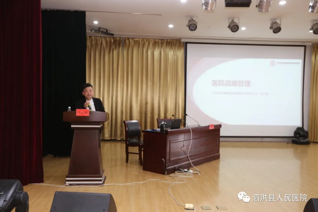 为了不断提高洪医集团的整体管理水平,5月18日,我院邀请北京精实医院管理咨询有限公司培训专家刘文斌来院,进行医院战略管理培训。吴保安董事主持会议。泗洪县人民医院、中医院、第三人民医院近200名中、高层管理人员及技术骨干参加了培训。