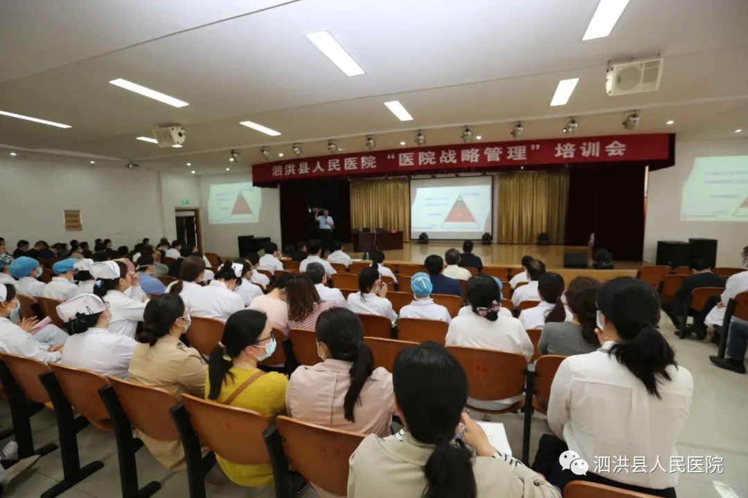 导读:为了不断提高洪医集团的整体管理水平,5月18日,我院邀请北京精实医院管理咨询有限公司培训专家刘文斌来院,进行医院战略管理培训。吴保安董事主持会议。泗洪县人民医院、中医院、第三人民医院近200名中、高层管理人员