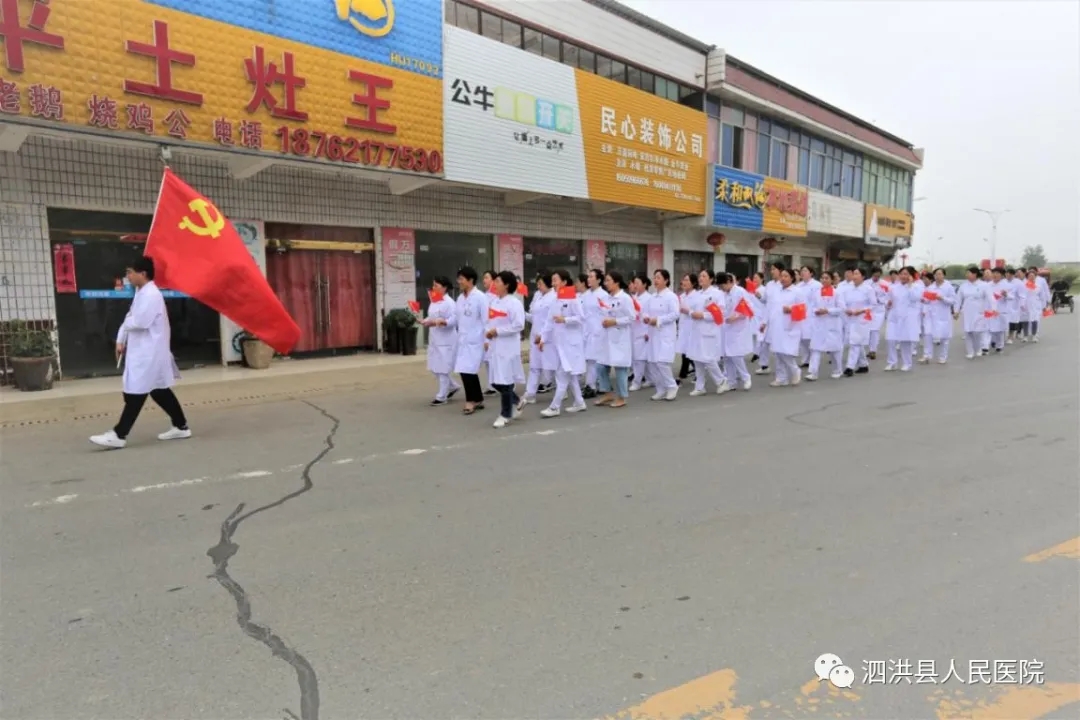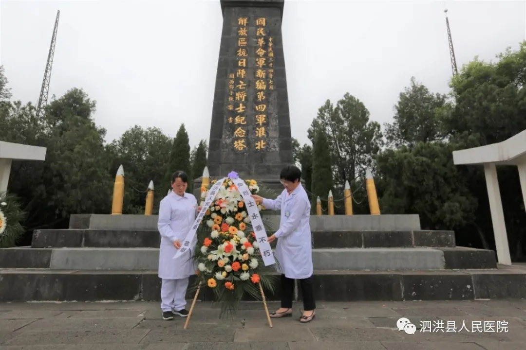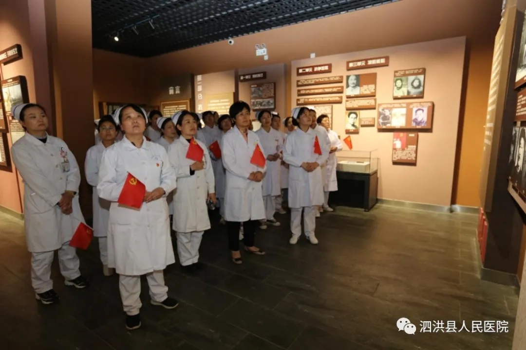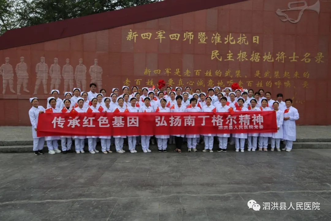 为庆祝建党100周年暨纪念5.12国际护士节2021年5月13日下午,泗洪县人民医院党委组织60余名护理中层干部、护士党员、入党积子先后到大王庄党性教育基地和雪枫陵园,开展传承红色基因,弘扬南丁格尔精神和共走长征路,同塑新作风活动,引导党员干部职工学史明理、学史增信、学史崇德、学史力行。本次活动由我院孙士梅副院长带队。