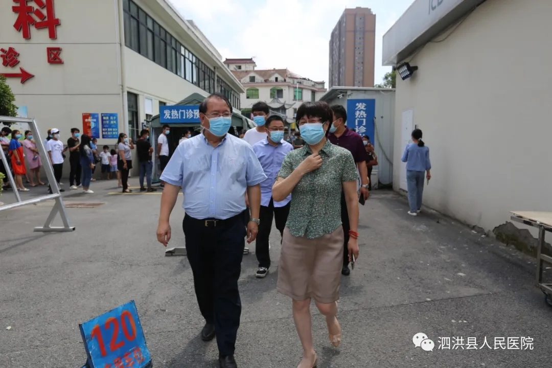 7月22日上午,由县卫健局副局长谭苏洪带队,检查组一行到我院检查指导疫情防控工作。洪医集团副董事长、泗洪县人民医院院长高明献带领相关部门负责人陪同检查。