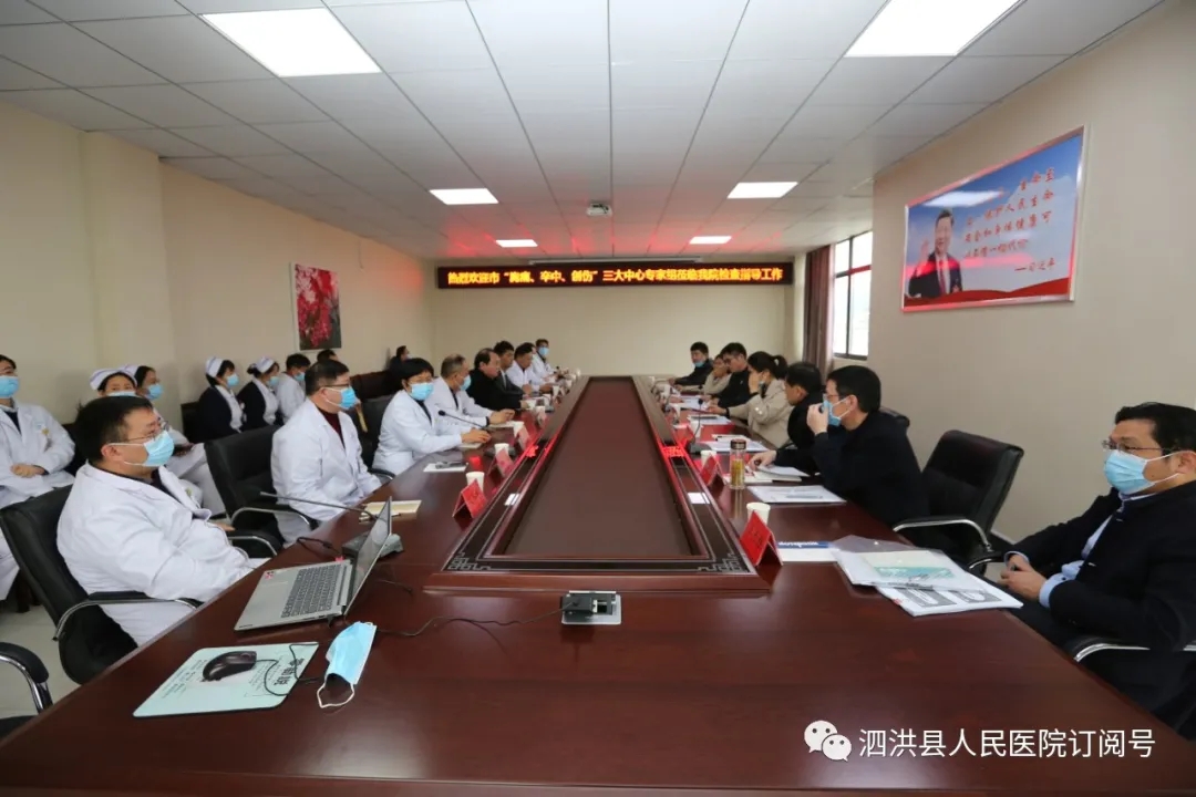 导读: 12月11日,由宿迁医院副院长孙明带队的市级专家组一行七人,对我院“胸痛、卒中、创伤”三大中心建设工作进行市级检查及督导。洪医集团副董事长、泗洪医院院长高明献,副院长陈虎、孙士梅,以及相关职能部门及临床科室负