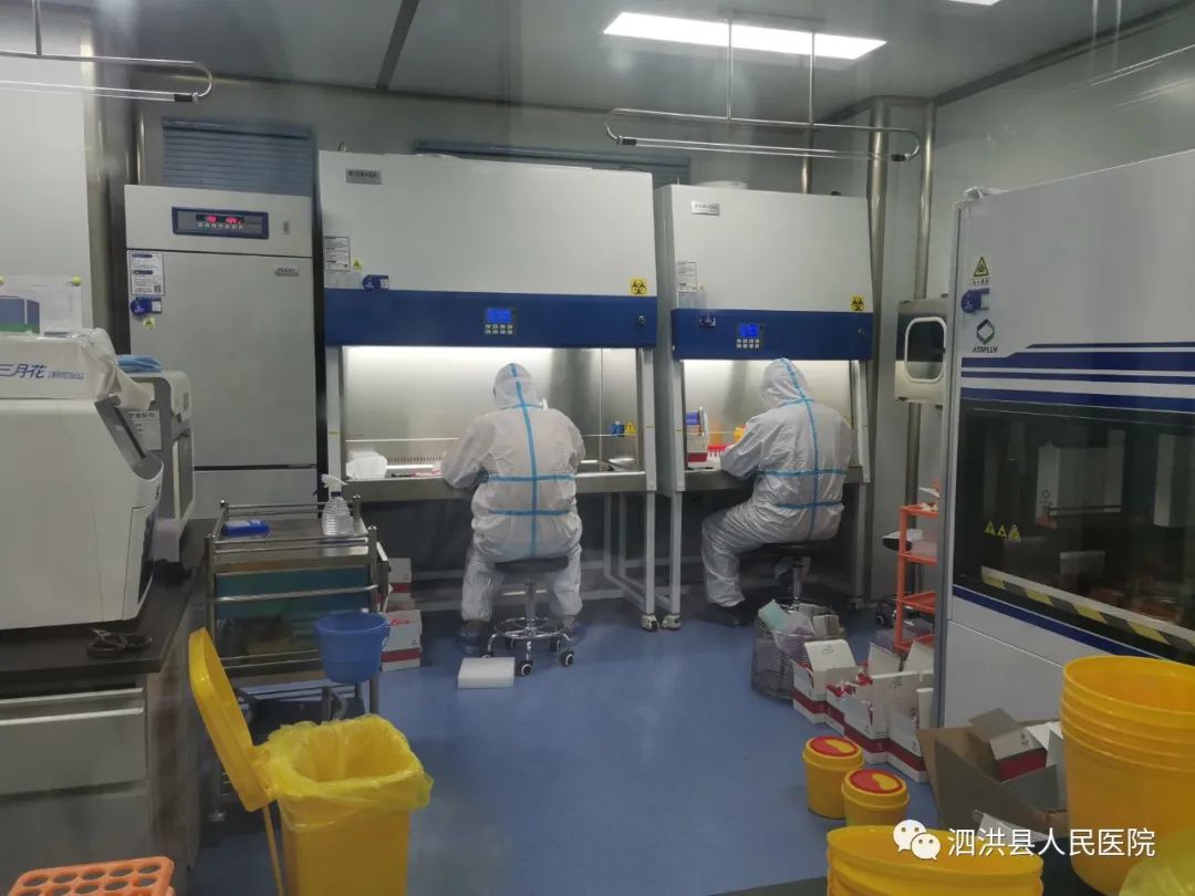 以3月12日在对外省(市)返宿人员发现1例新冠肺炎无症状感染者为主要标志,我市掀起了又一轮的防疫抗疫高潮。作为泗洪地区日检可达1万管能力的泗洪医院检验科及相关检验人员,无疑又站到了抗疫的前排。3月12日早上,接上级通知,就地支援宿豫区全员大规模核酸检测筛查工作2轮。收到通知后,检验科黄小丽副主任在人员紧张的情况下迅速集结,统筹协调安排好所有可以参与大规模核酸检测的人员力量,核算好有限时间内的实验室检测能力,迅速进入战时状态。